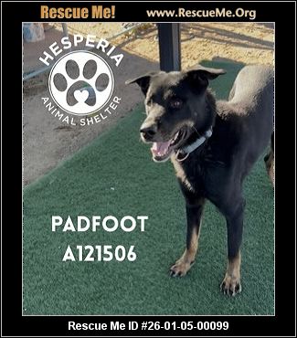 Read more »26-01-05-00099D074Padfoot (m)(male)German Shepherd mixSan Bernardino County, Hesperia, CAID: A121506