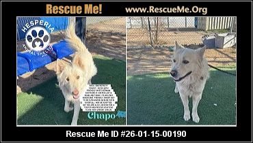 Read more »26-01-15-00190D074CHAPO (m)(male)German Shepherd mixSan Bernardino County, Hesperia, CAID: A122941