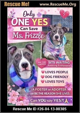 26-04-13-00385D008Ms. Frizzle 911 (f)(female)American Staffordshire Terrier mixNYID: 26-04-13-00385