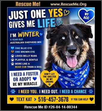 CRITICALLY URGENT - ONE YES CAN SAVE HIM This post is going out with a prayer.That somewhere someone sees Winter