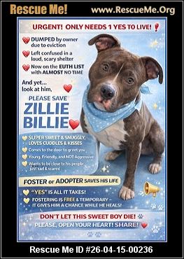 EUTH COMMAND!!! SOS!!! SAVE ZILLIE BILLIE!!! 2 YEARS OLD | 65 LBS | OUT OF TIME HE CAN BE KILLED AT ANY MOMENT -