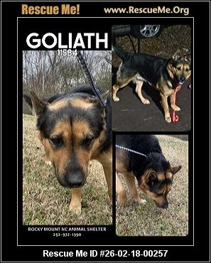 Read more »26-02-18-00257D074GOLIATH (m)(male)German Shepherd mixNash County, Rocky Mount, NCID: 11584