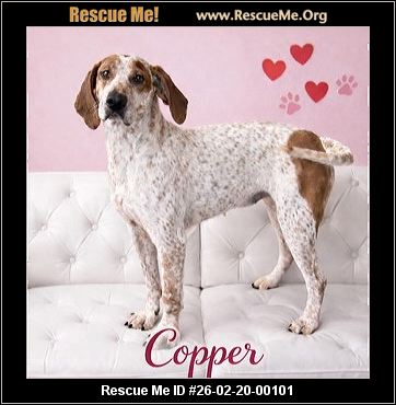 Copper is beautiful Redtick Coonhound who was saved off a chain in WV. She is listed here under Bluetick because